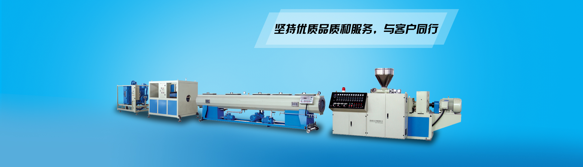 PVC管材擠出生產線   該機組由PVC錐形雙螺桿擠出機,真空定型臺,牽引機,切割機,翻料架等組成。擠出機及牽引機采用進口交流變頻調速裝置,真空泵及牽引電機均采用優質產